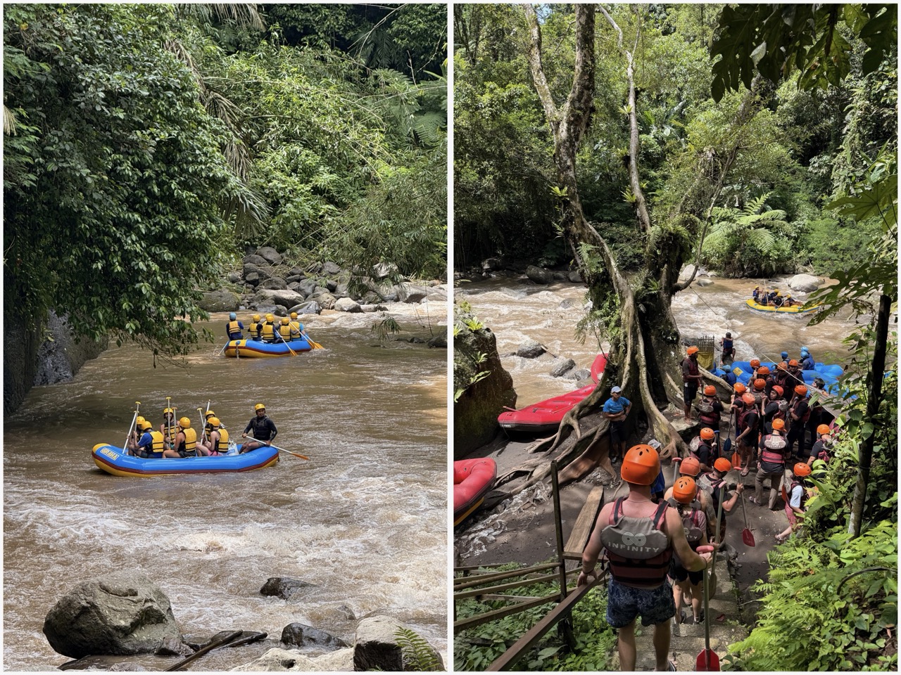 Ein absolutes Highlight war für uns das Riverraften. Rund 1.5 Stunden ging die Fahrt mit dem Gummiboot durch den Fluss Ayung. Auf der Strecke kamen wir an mehreren kleinen Wasserfällen vorbei, wir konnten im Fluss schwimmen gehen und standen unter den Wasserfällen. Nebst ganz viel Action ist es auch ein tolles Erlebnis so direkt in der Natur zwischen den Bäumen hindurch zu fahren. Uns erinnerte die Natur mit den grossen Blättern an den Film Avatar. Wir können dies jedem ans Herz legen. Der Preis dafür betrug sich etwa um die CHF 12.- pro Person was wirklich sehr wenig ist, wenn man vergleicht wie viel man dafür an anderen Orten bezahlt.
