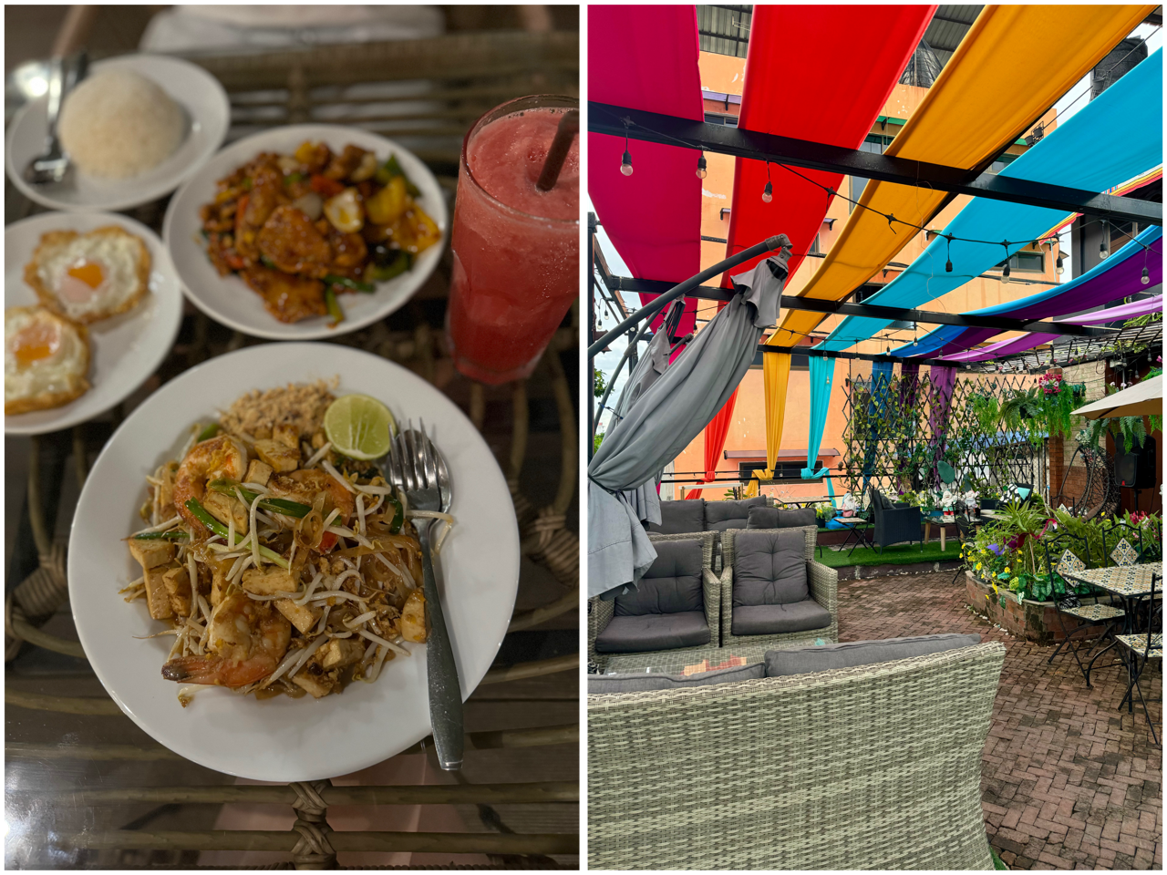 Während unserem Aufenthalt in Bangkok sind wir auf zwei Restaurants gestossen, welche uns vom Essen, Preis und Ambiente besonders stark überzeugt haben. Beide Restaurants sind ca. 5-10 Gehminuten vom grossen Tumult entfernt. Das Restaurant „Lamphu Tree House“ liegt an der Prachathipatai Road. Es ist ein Hotel welches auch ein Restaurant hat im Garten. Das Pad Thai war hier besonders gut. Das zweite Restaurant hiess „Bravo Rooftopbar“, der Name täuscht hier ein wenig weil weder das Ambiente, noch die Speisekarte an eine Bar erinnerten. Hier kann ich das Basil Chicken empfehlen, welches sehr gut war.