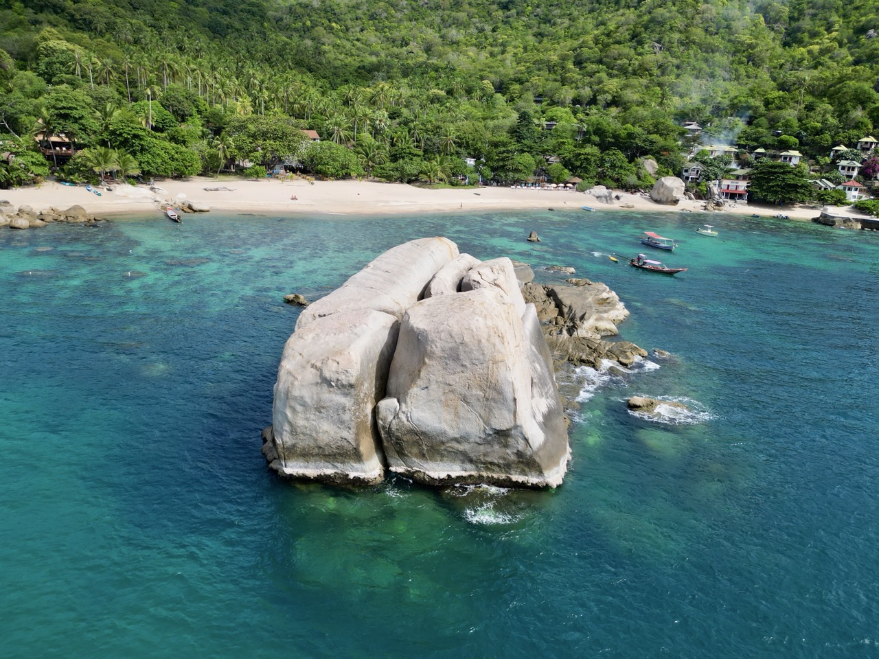 Unsere Asienreise führte uns nach zwei Grossstädten weiter zu den traumhaften Stränden von Koh Tao. Die Insel welche man in Thailand als Tauchparadies kennt. Unsere Unterkunft haben wir bei unserem letzten Stopp in Bangkok in einem Reisebüro gebucht. Wir hatten Glück, die Dame hat uns einen super Preis angeboten. Bei unserer Ankunft waren wir jedoch erstmal verwirrt, denn der Shuttle der uns mitnahm fuhr uns zu einem ganz anderen Hotel, als abgesprochen. Da das Hotel aber mehr Vorteile bot, waren wir darüber gar nicht traurig. Das eigentlich für nur 3 Nächte gebuchte Bungalow im Hotel Montalay konnten wir vor Ort noch um 6 weitere Nächte verlängern. Das Personal vom Hotel war unglaublich freundlich und hat unseren Aufenthalt nochmals schöner gemacht. So wurde uns zum Beispiel wie selbstverständlich Pad Thai von einem entfernten Restaurant mitgebracht, als wir nach dem Tauchen zu spät (um 21 Uhr) zum essen zurück waren. Das Hotel hatte auch einen Pool, der ebenfalls von der Tauchschule vor Ort zum unterrichten genutzt wurde. Hinter dem Pool begann der Strand und man war somit auch direkt am Meer. Auch die Lage an der Tanote Bay war wunderschön. Etwas abgelegen, jedoch hat man alles was man braucht für eine Woche am Meer. Da das Hotel gerade renoviert wird und per 01.01.2025 neu eröffnet wird, wissen wir nicht wie es danach aussieht. Das Frühstücksareal wird aber so bleiben und die meisten Mitarbeiter werden weiterhin dort arbeiten. Daher wird ein Aufenthalt nach den Renovationen bestimmt noch besser.