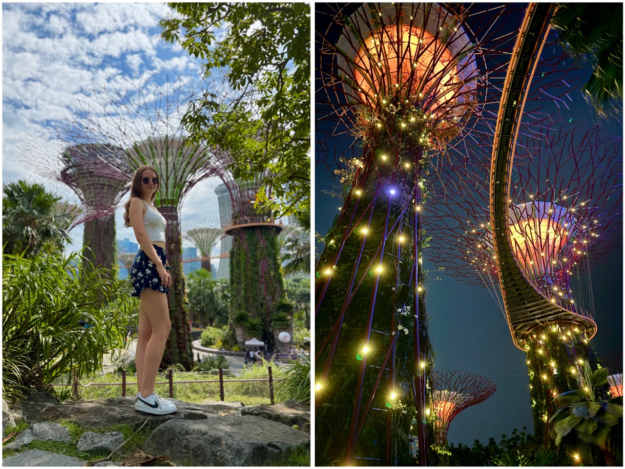 Gardens by the Bay ist ebenfalls ein Ort den man nicht verpassen sollte. Um besonders eindrückliche Bilder davon zu machen empfiehlt es sich bei Punkt B mit dem Fahrstuhl nach oben zu fahren. Den Fahrstuhl findet man direkt bei den Supertrees, anhand der Beschilderung. Bei diesem erhöhten Punkt hat es viel weniger andere Leute und man hat einen besseren Blick auf den Garten und die Supertrees. Weiter unten beim Punkt „Restaurants“ habe ich ein tolles Hawker Restaurant erwähnt.