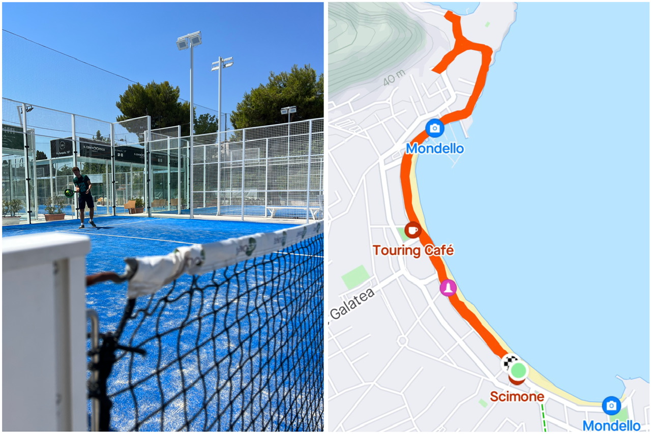 Da Mondello eher ein kleinerer Ferienort ist, gab es nicht sehr viele Aktivitäten, die man machen konnte. Wir konnten unsere vier Tage aber dennoch gut füllen. In einer gut erreichbaren Fussdistanz befindet sich am Strand das Albaria Surf & SUP Center. Dort kann man Windsurfen und Standup-Paddles mieten. Wenn man am Strand entlang eine Weile in die andere Richtung nach links läuft, gibt es Abends einen Markt mit diversen Schmuck-, Kleider- und Süssigkeitenständen, von denen man gut Souvenirs mit nachhause bringen kann. Ebenfalls in dieser Richtung befindet sich ein Paddlecenter. Dort hatten wir Vormittags einen Platz reserviert. Vor Ort war anfangs leider niemand anwesend trotz Buchung. Ungefähr 40 Minuten später tauchte dann doch noch jemand auf, damit wir Paddle spielen konnten. Die ganze Anlage war in einem sehr guten Zustand. Auch empfehlen kann ich morgens Joggen zu gehen, wenn es noch nicht ganz so warm ist. Ausgehend von unserer Unterkunft, welche ca. in der Mitte des Strandes lag, joggten wir nach links am Strand entlang, bis es dann irgendwann bei einem Tor zu einem Privatgrundstück nicht mehr weiterging. Die Route ist die ganze Zeit flach und insgesamt kamen wir mit dem Hin- und Rückweg auf etwas über 4 Kilometer. Unten siehst du ein Bild der Joggingroute.